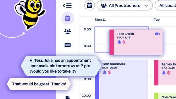The platform brings scheduling, clinical notes, billing, Medicare claiming, online forms, integrated telehealth, online booking, client communication, reminders, and reporting together in one easy system.
